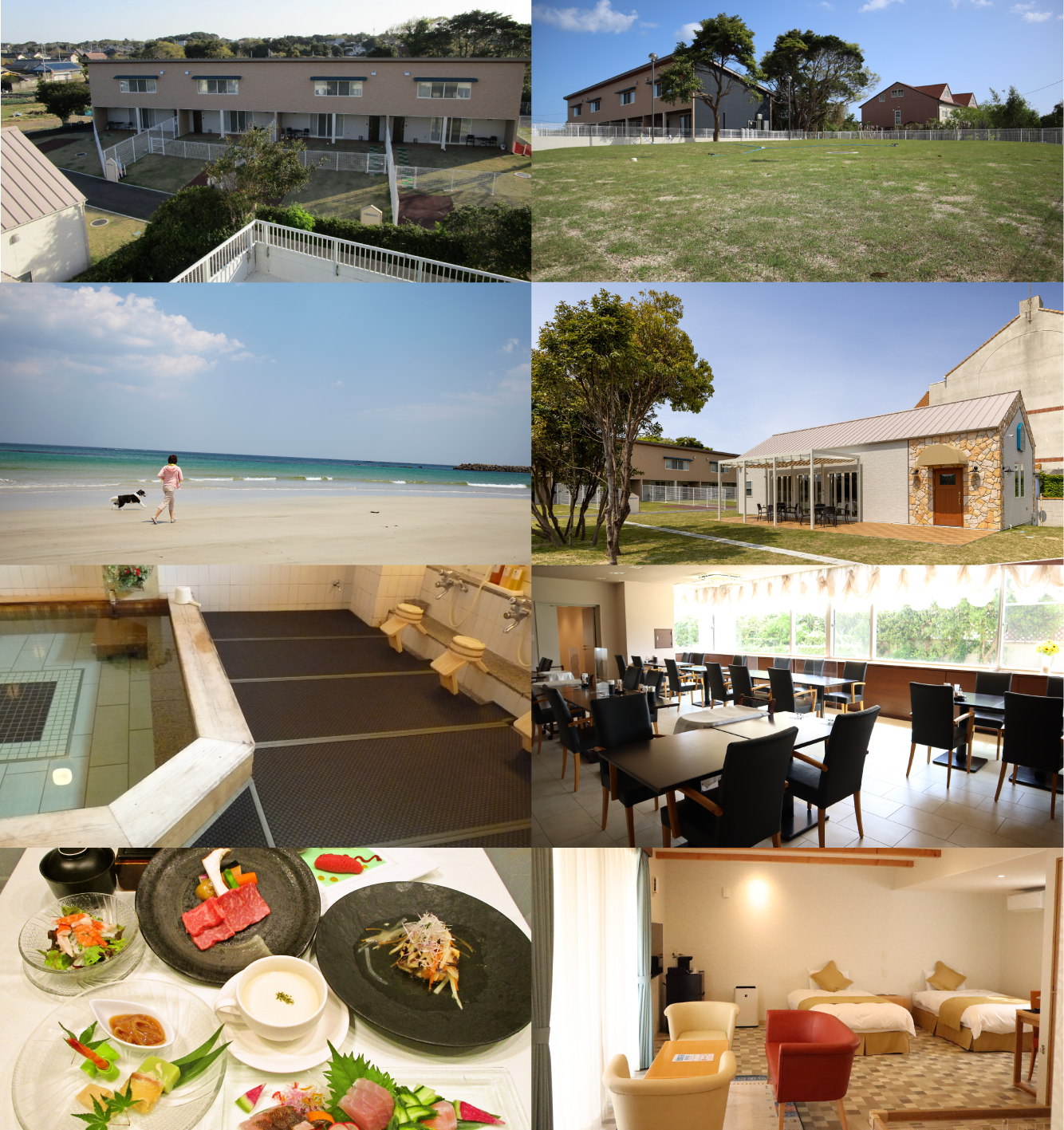 目の前に延々と広がる美しい白浜『国府白浜』。打ち寄せる波と潮風に吹かれ愛犬と戯れる 潮騒と灯の宿。