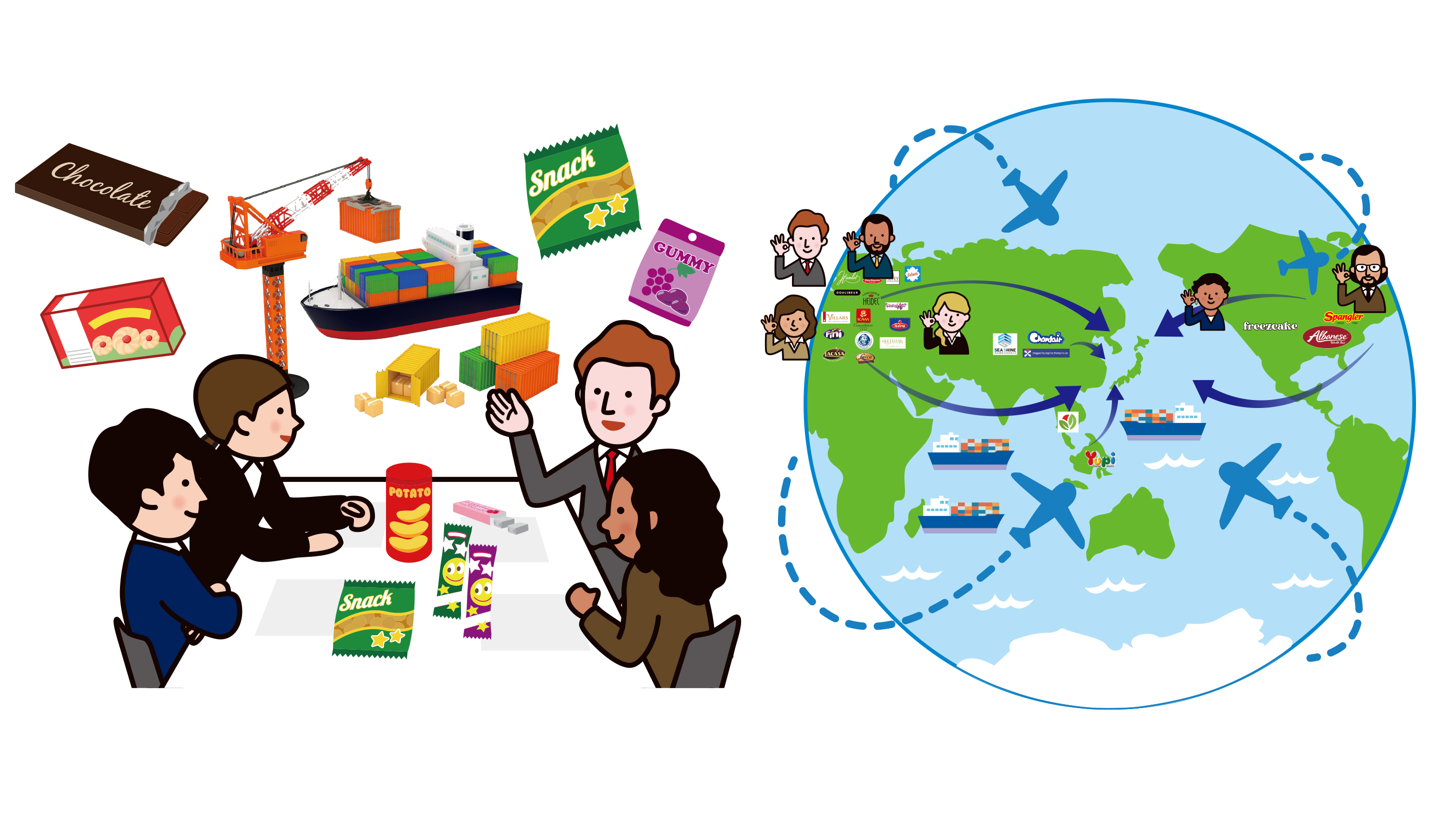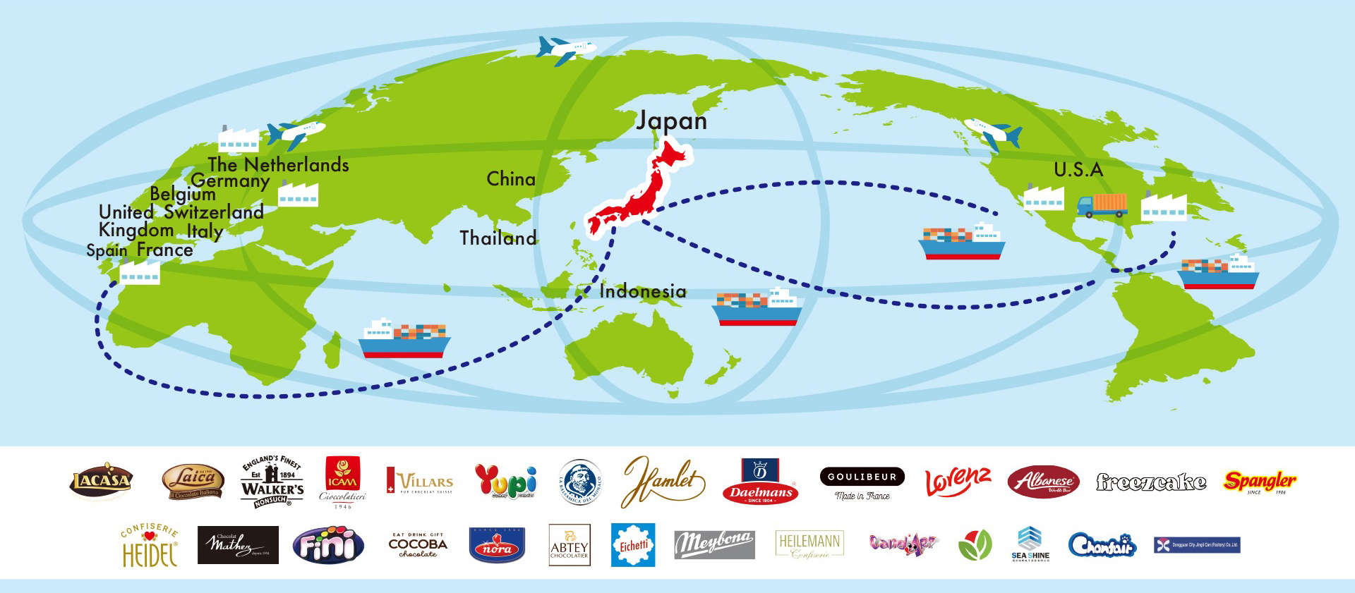 世界中の菓子食品を発掘し、輸出入から企画、開発、製造、流通管理までの一貫体制で製品化出来る会社です。