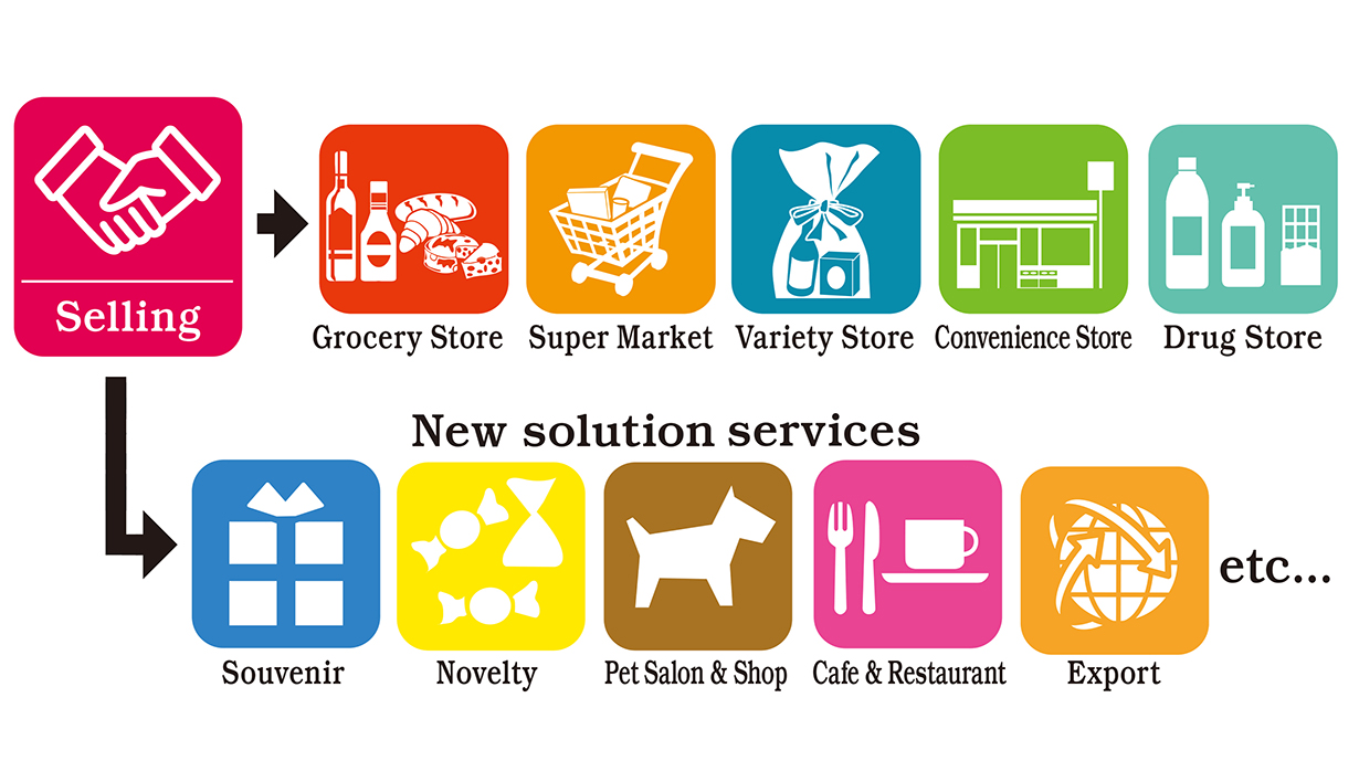 既存の販売ルート【食品専門店】【スーパーマーケット】【雑貨店】【コンビニエンスストア】【ドラッグストア】に加え、
